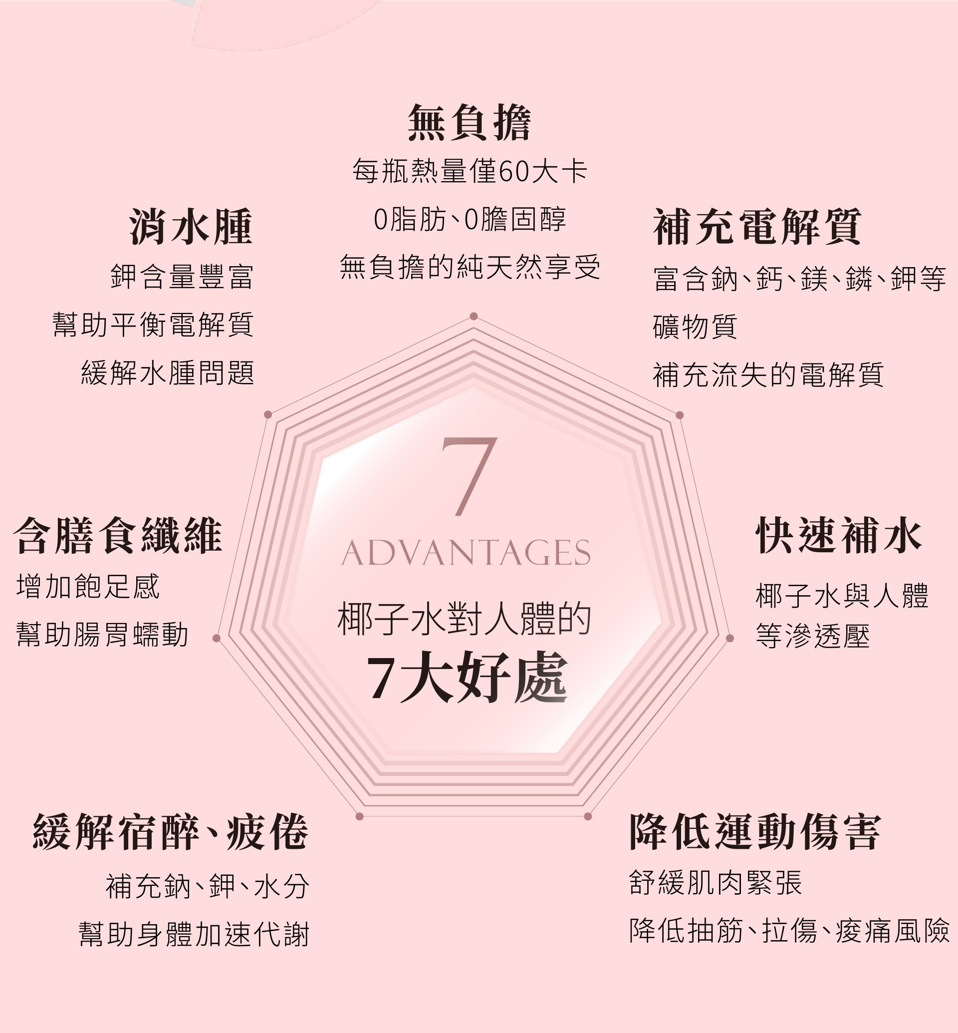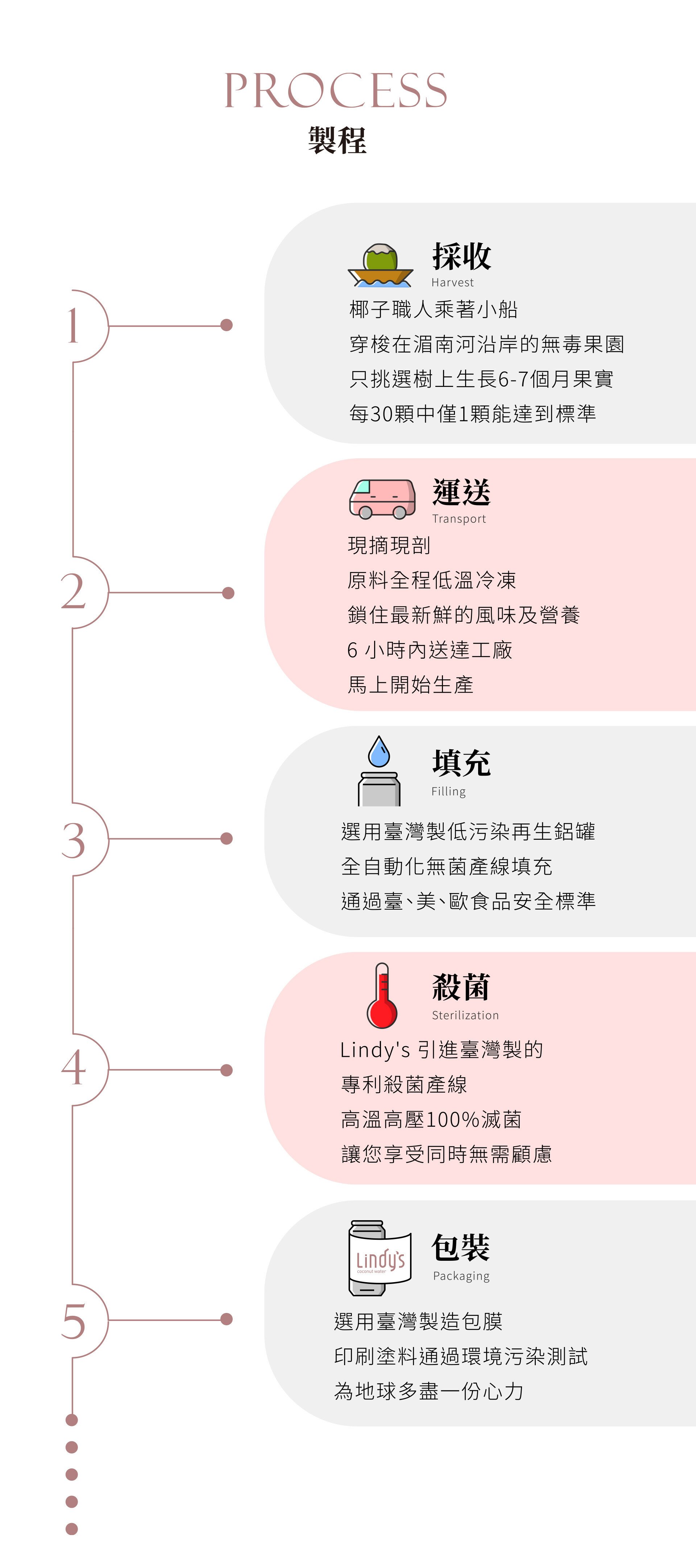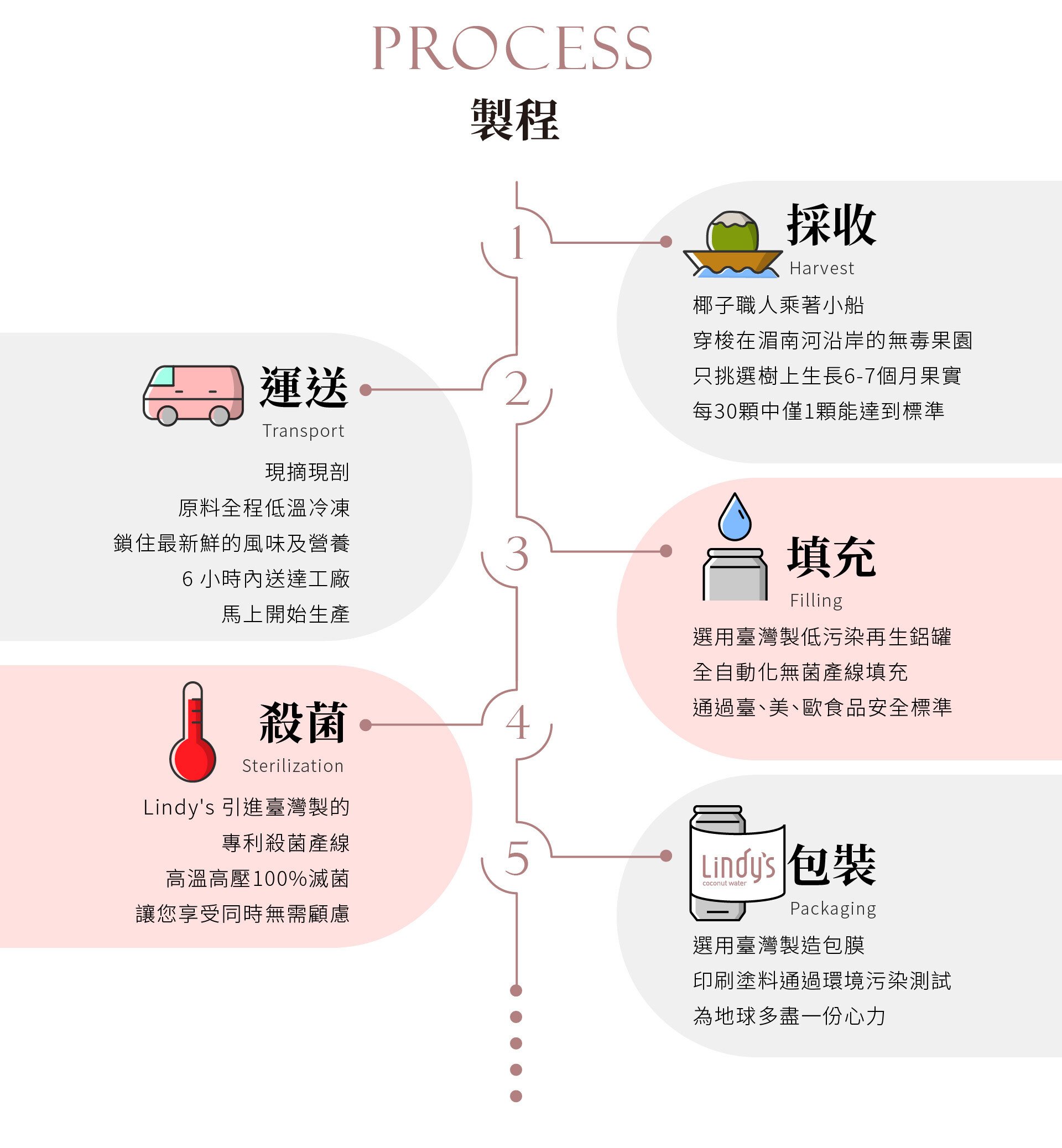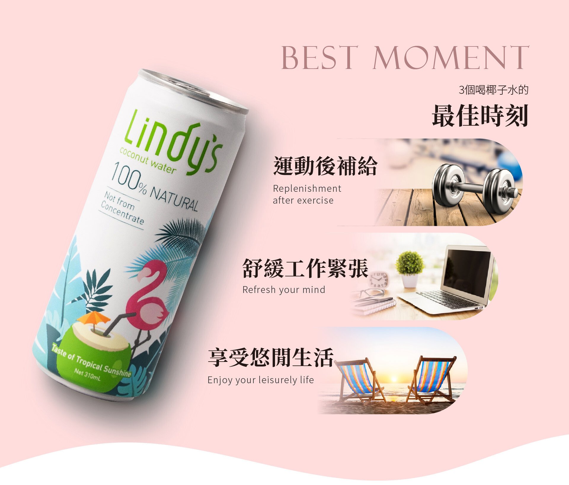 products產品介紹LINDY‘S 椰子水24入裝〔新品上市〕泰國原裝進口 黃金比例椰子水1190★ 1 0 0 % 純天然,非濃縮還原,0 添加 ★ 只選用生長 6~7 個月椰子,每 3 0 顆中僅有 1 顆能通過標準 ★ 從頂級椰子到 LINDY‘S椰子水,我們只做兩件事:殺菌、包裝 ★ 原料全程低溫冷凍運輸,鎖住新鮮風味 ★ 高溫高壓滅菌,享受無需顧慮 ★ 無毒生態果園、低染製程, LINDY‘S為地球盡一份心力 ★ LINDY‘S風味評鑑師調和獨一無二的黃金比例 加入購物車CART 立即購買BUY 商品說明規格說明 規格說明(單瓶)品名Lindy’s 100% 椰子水淨含量310毫升原料100% 椰子水有效日期如包裝上顯示(西元年/月/日)保存期限730天進口商欽宇食品有限公司地址臺北市中山區中山北路2段93巷22號2樓2F電話02-27711991原產地泰國食品業者登錄字號F122188176-00000-8投保產品責任險字號明台產物0885第10PDT00355號營養標示每一份量200毫升 本包裝含1.5份 每份每100毫升每日參考值百分比熱量40 大卡20 大卡2 %蛋白質0 公克0 公克0 %脂肪0 公克0 公克0 %飽和脂肪0 公克0 公克0 %反式脂肪0 公克0 公克*碳水化合物9.8 公克4.9 公克3.3 %糖8 公克4 公克*鈉54 毫克27 毫克2.7 %鈣28 毫克14 毫克2.33 %鉀384 毫克192 毫克*